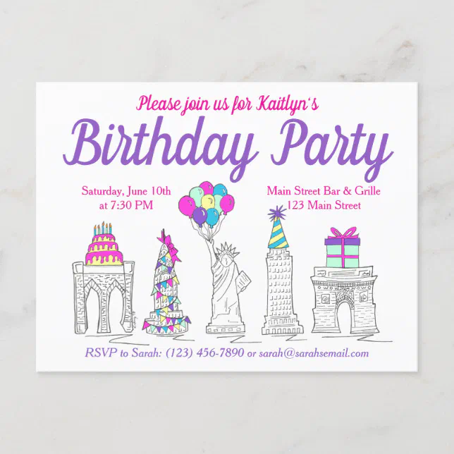 New York City NYC Landmarks Birthday Party Invitation Postcard | Zazzle
