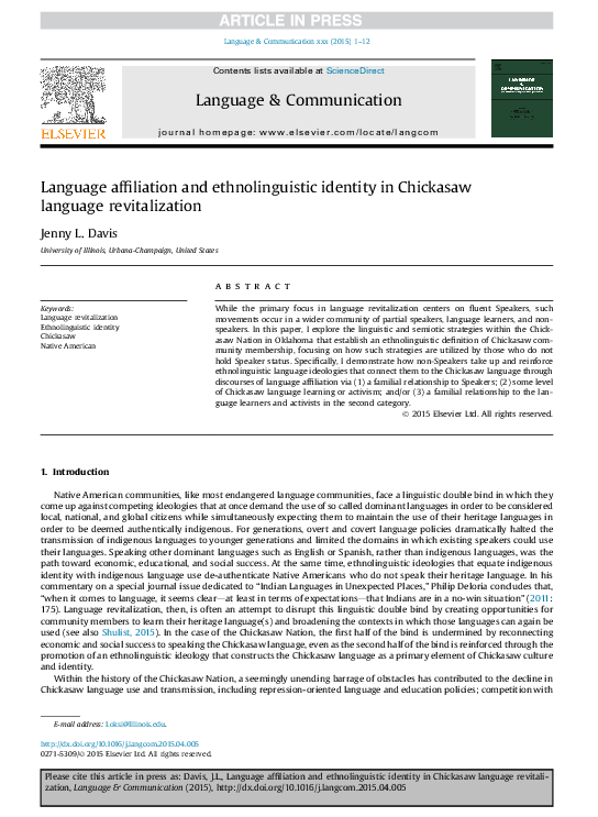 (PDF) Language affiliation and ethnolinguistic identity in Chickasaw ...