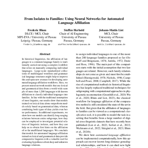 From Isolates to Families: Using Neural Networks for Automated Language ...