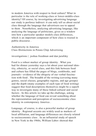 Authenticity in America Class Distinctions in Potato Chip Adv.docx