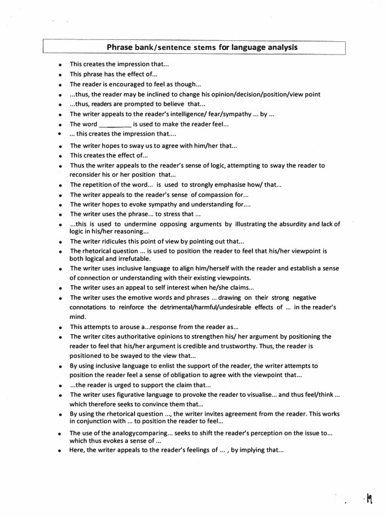 Language Analysis Essays | English - Year 12 VCE | Thinkswap