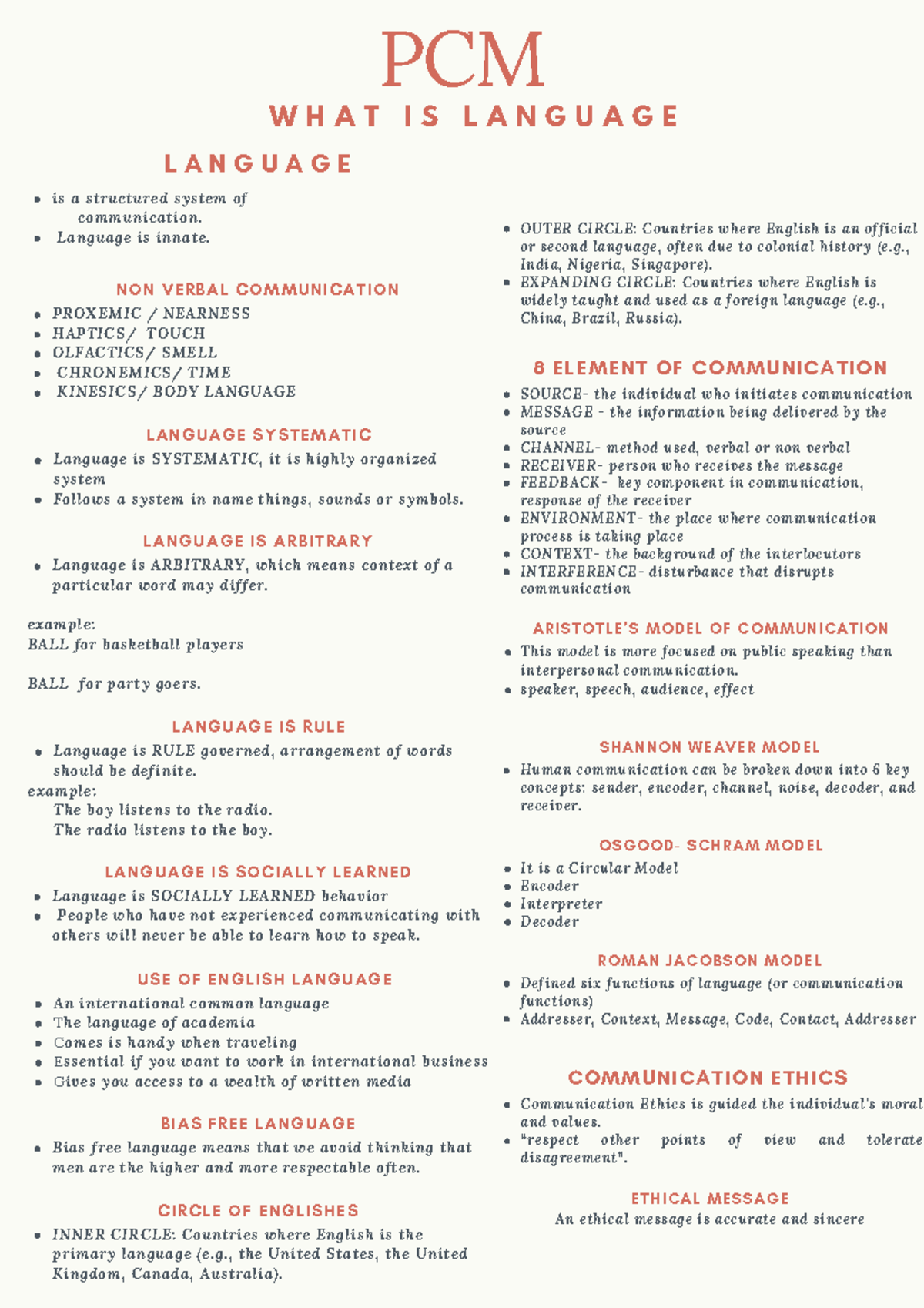 PCM Language and Communication: Key Concepts and Models - Studocu