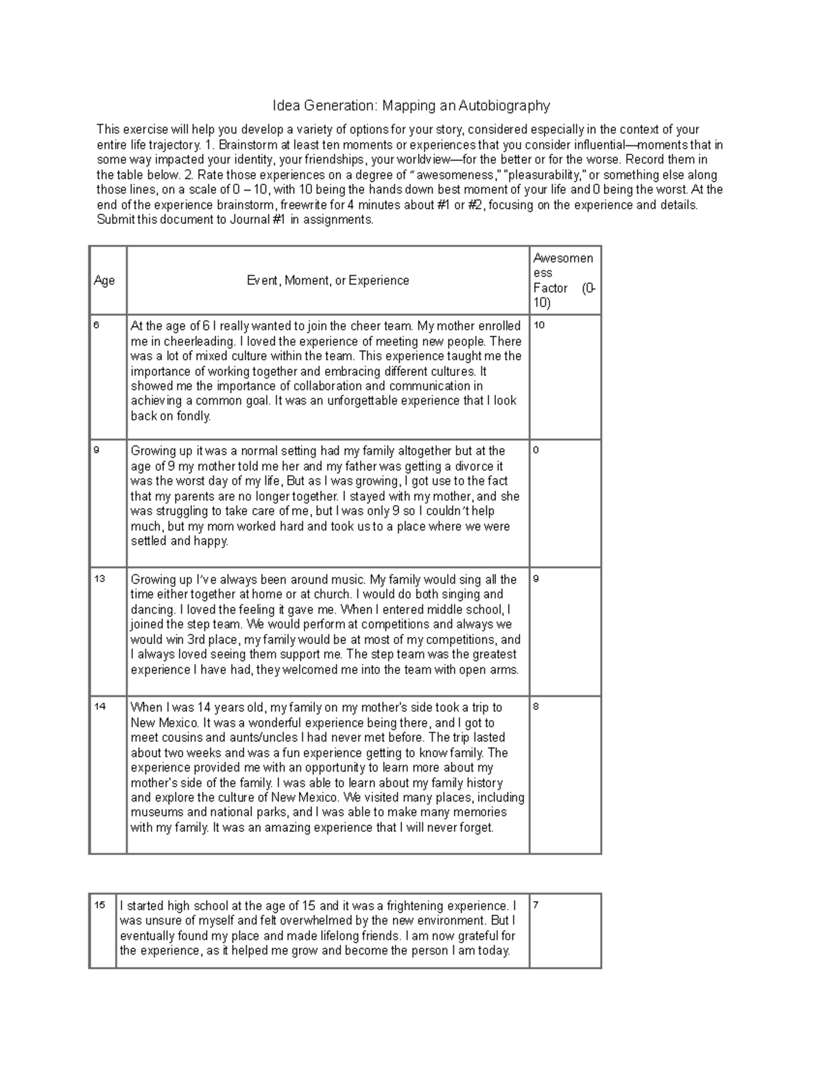 My Autobiography Example