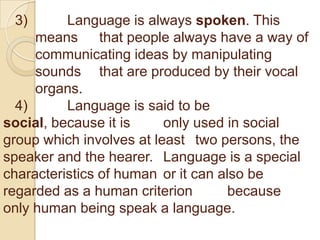 Characteristics and features of Language | PPT