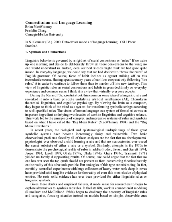 (PDF) Connectionism and language learning