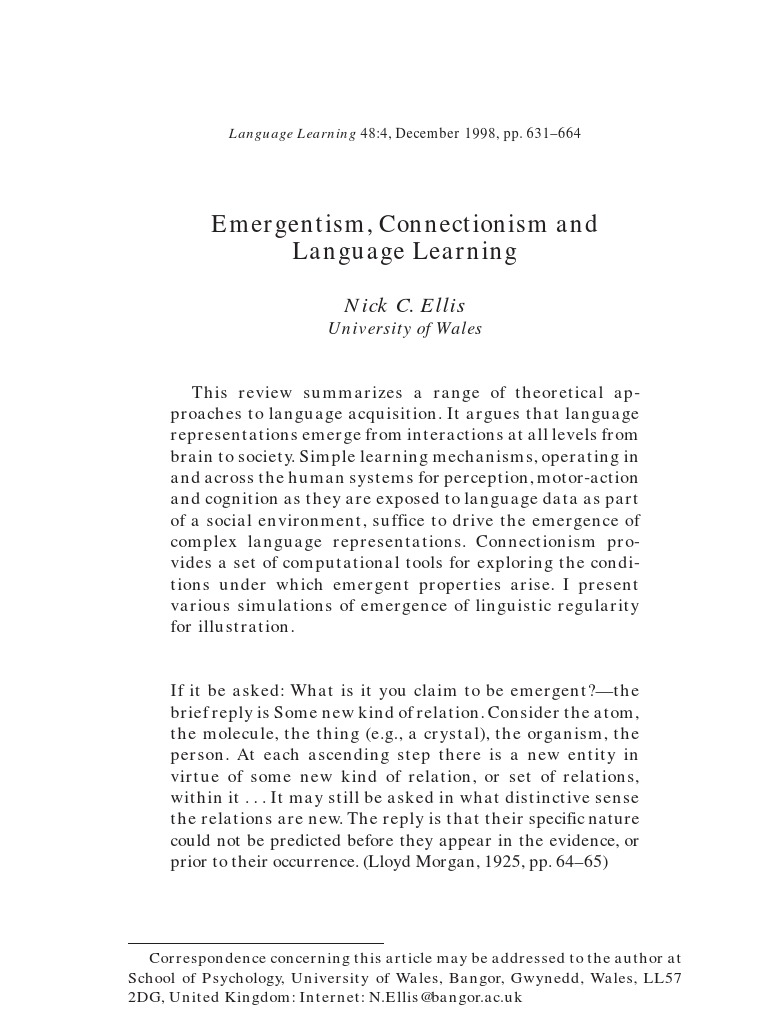 Ellis - Emergentism, Connectionism and Language Learning | PDF ...