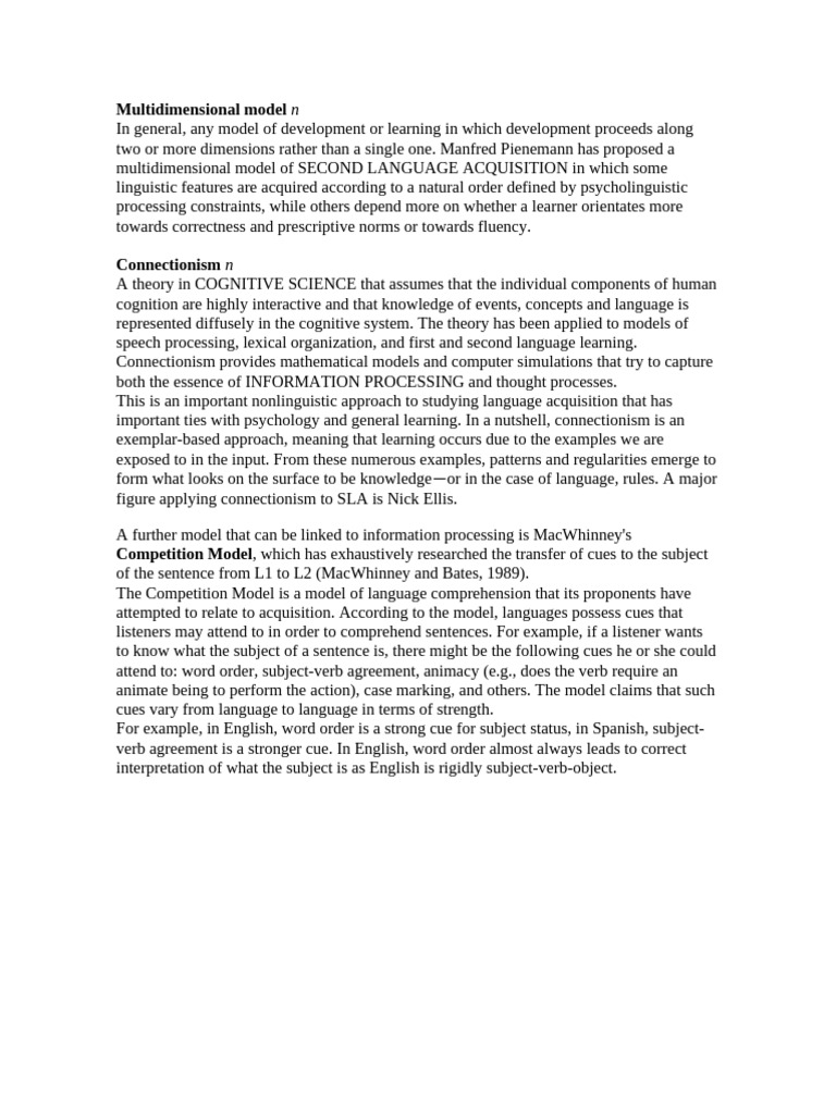 (PDF) Connectionist Models: Implications in Second Language Acquisition