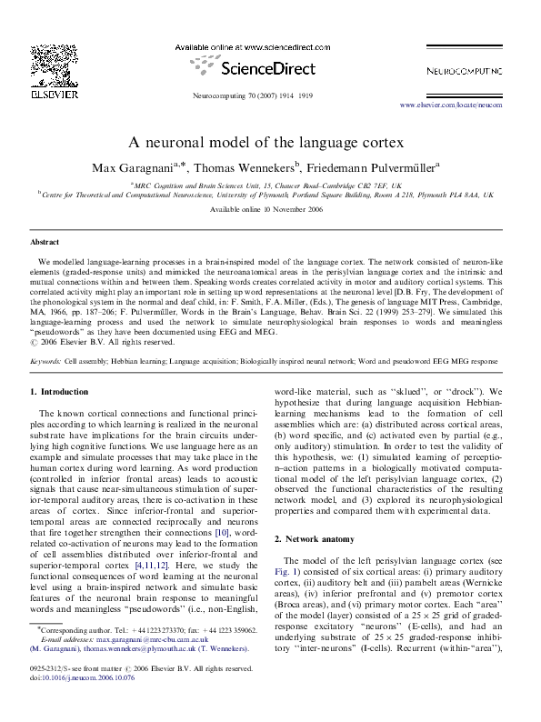 (PDF) A neuronal model of the language cortex