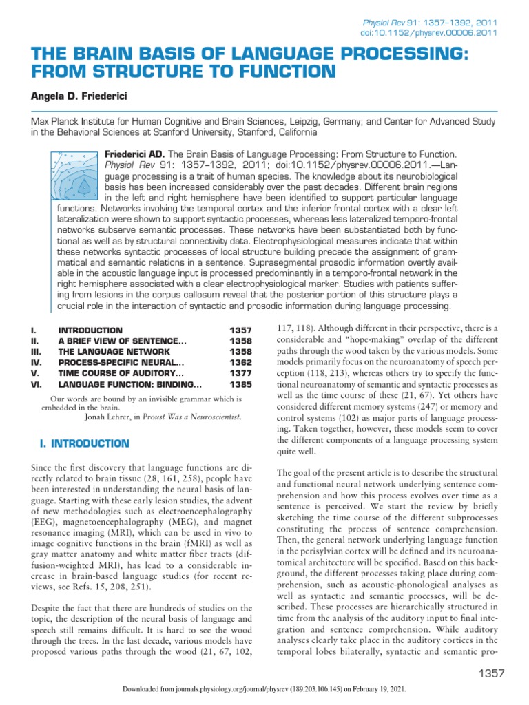The Brain Basis of Language Processing: From Structure to Function ...