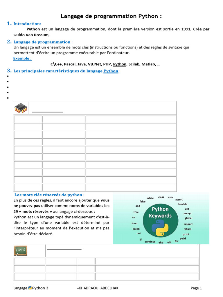 Introduction au cours de Python | PDF | Variable (informatique ...