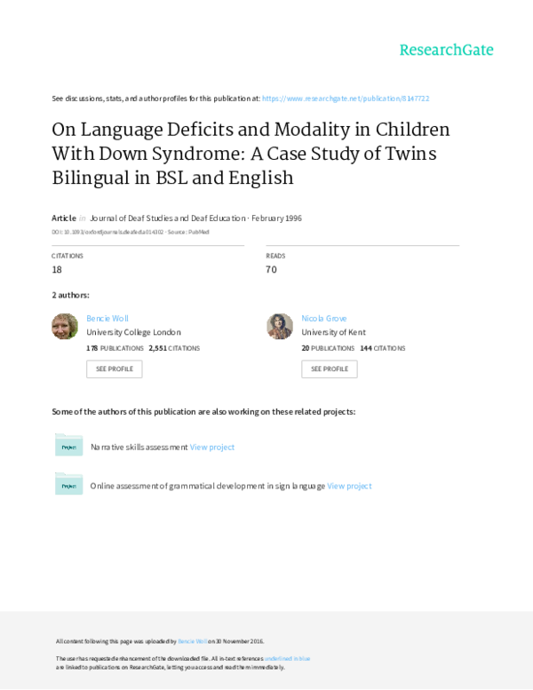 (PDF) On Language Deficits and Modality in Children With Down Syndrome ...