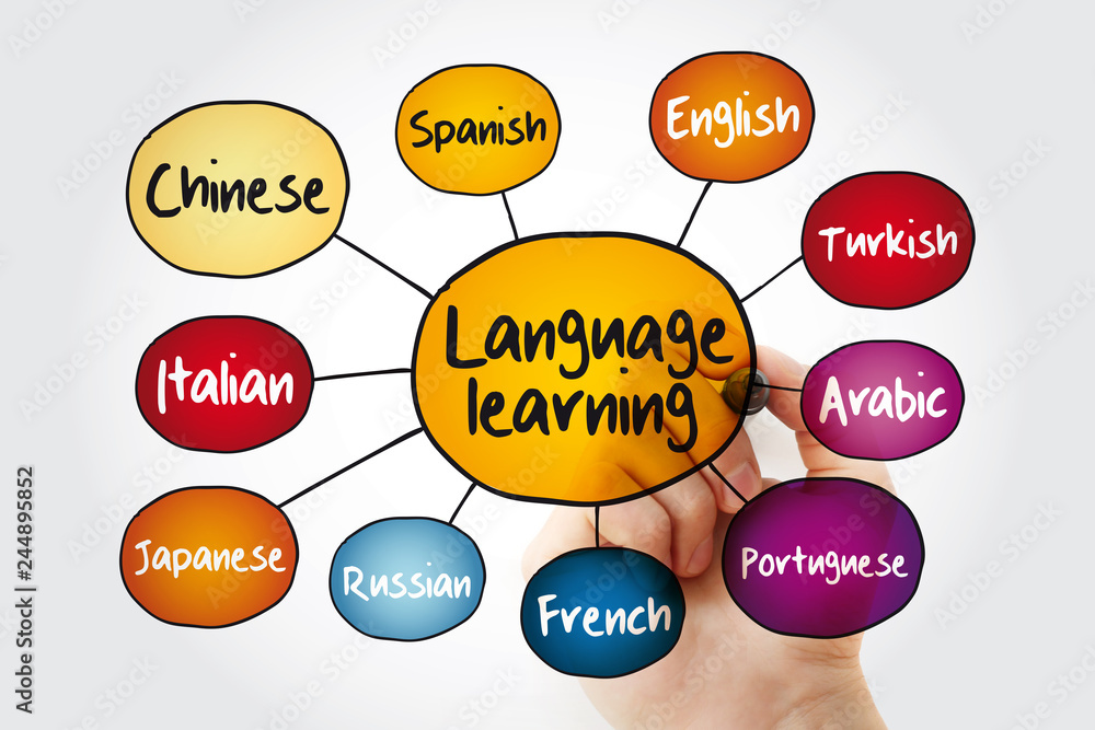 Different Language learning mind map flowchart with marker, education ...
