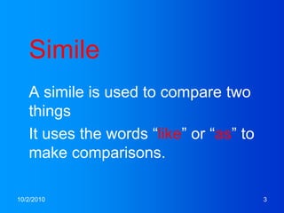 POETRY FIGURATIVE LANGUAGE SIMILE 4 A comparison of