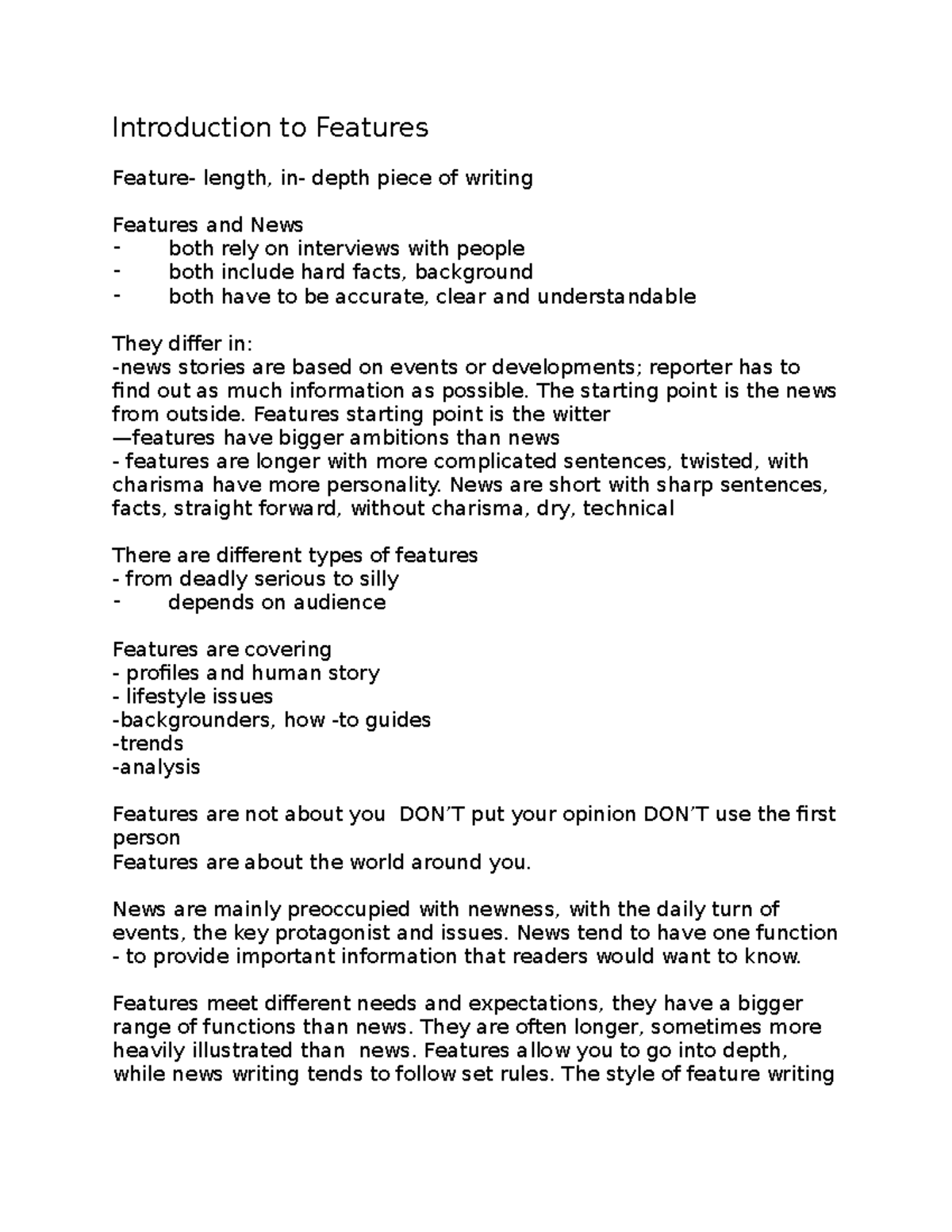 Introduction to Features - Introduction to Features Feature- length, in ...