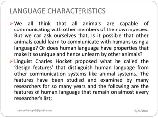 Characteristics of Language, Introduction to Linguistics lecture notes ...