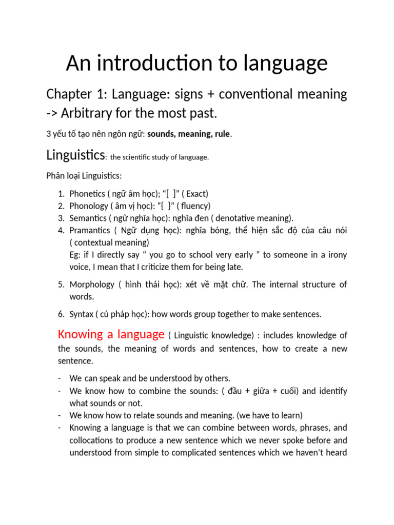 Lecture 1 - An Introduction To Language PDF | PDF | Phoneme | Phonology