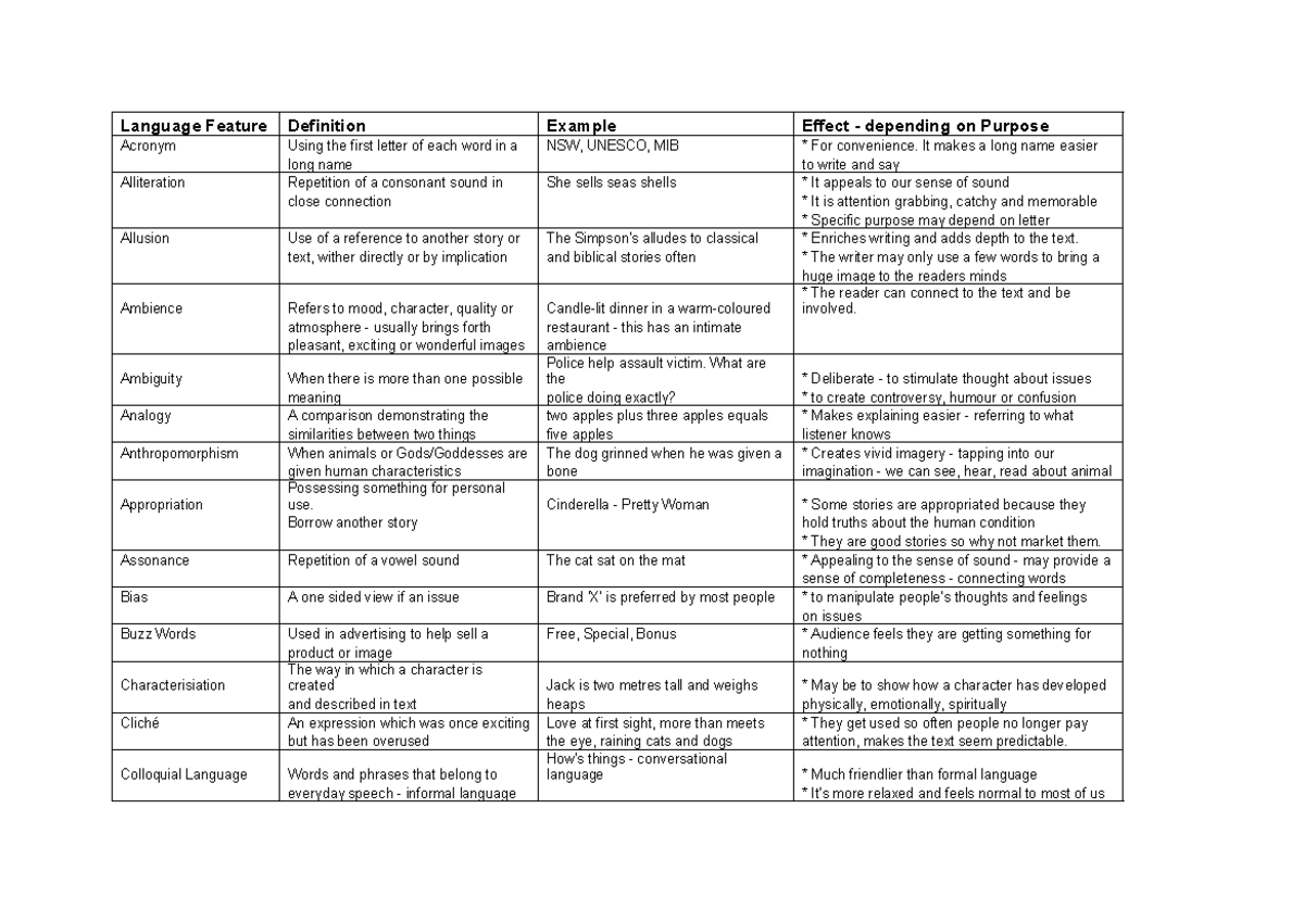 Language features and their effects- Seniors - Language features and ...