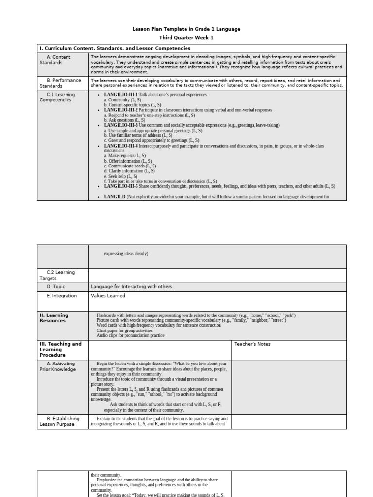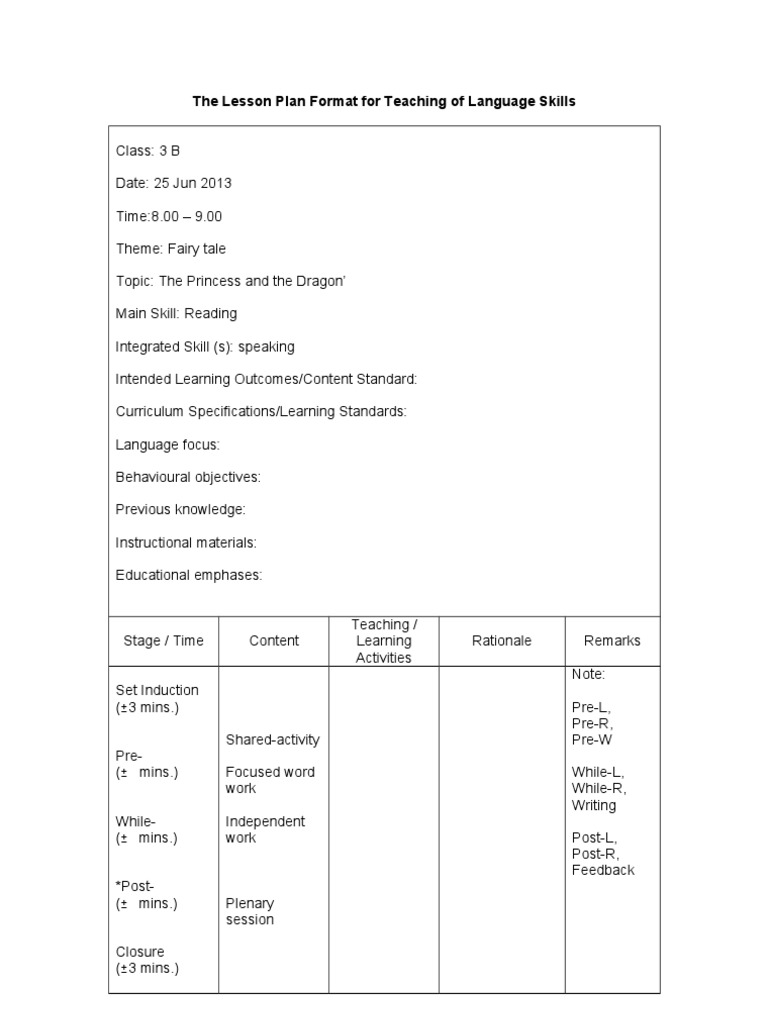 Language Skills Lesson Plan Template | PDF | Language Arts & Discipline