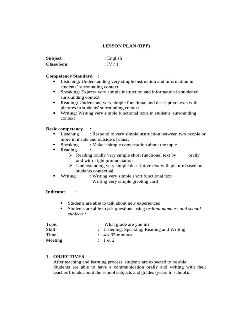 Lesson Plan Greetings | PDF | Lesson Plan | English Language