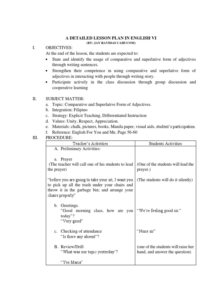 A Detailed Lesson Plan in English Vi 22222 | PDF | Languages | Foreign ...