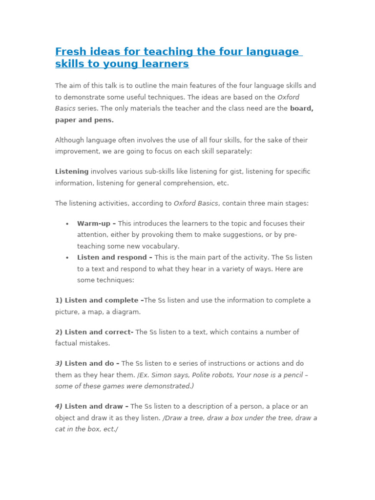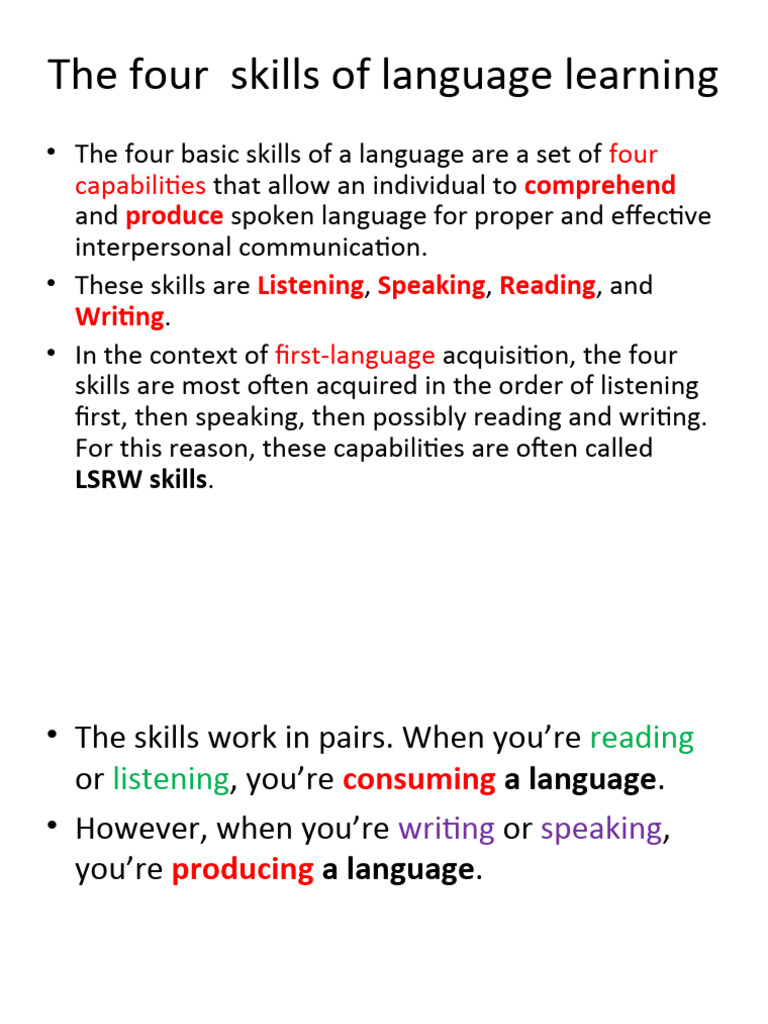 The four skills of language learning | PDF | Language Acquisition ...