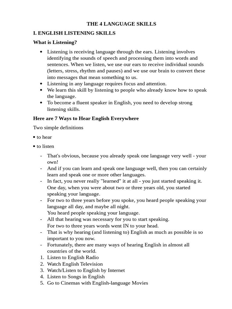 The 4 Language Skills | PDF | English Language | English As A Second Or ...