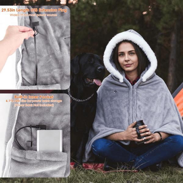 8 Zone Wearable Heated Blanket 3 Adjustable Heat Levels 59x31 Inch Soft ...