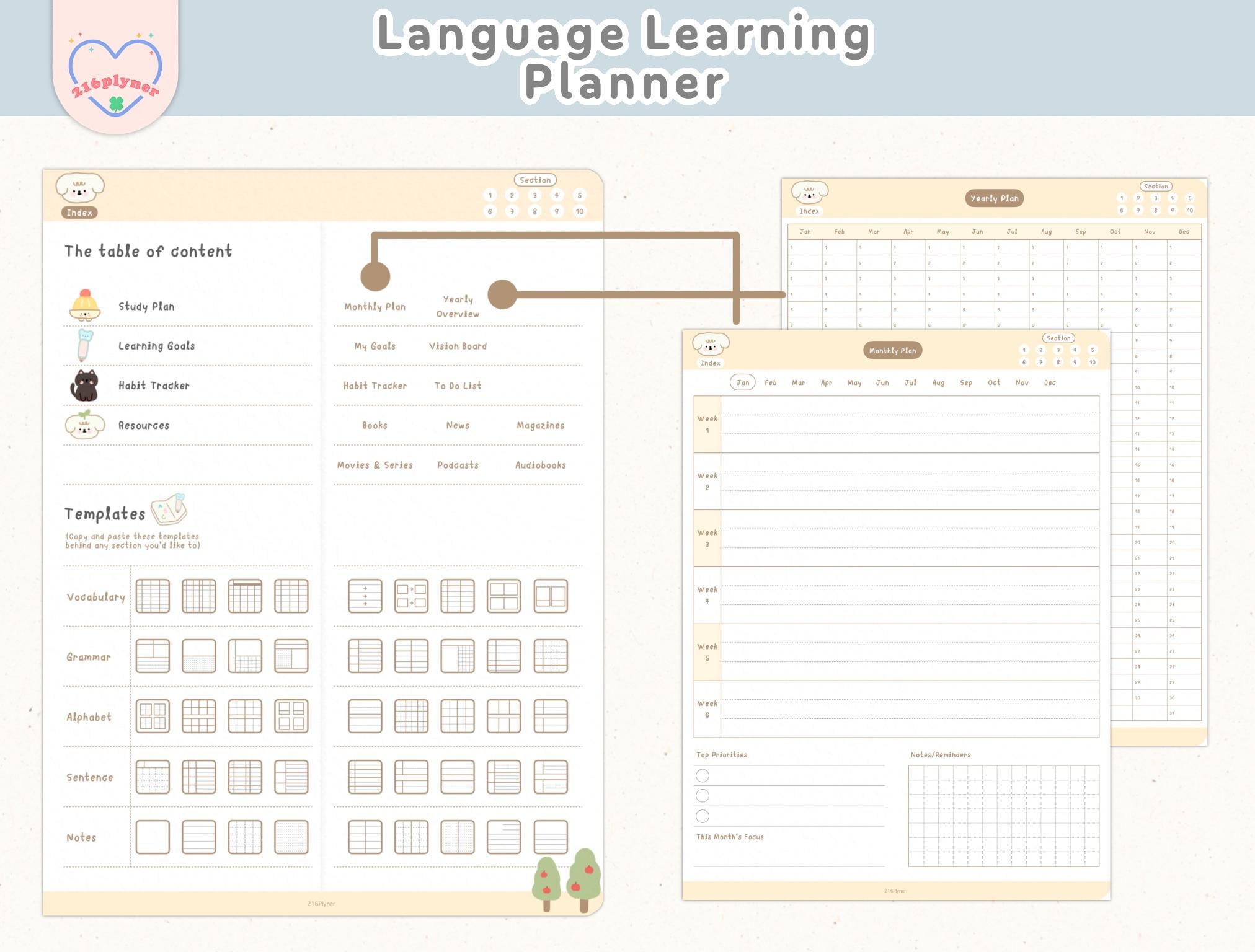 Language Learning Notebook/planner Learn Grammar Vocabulary Digital ...