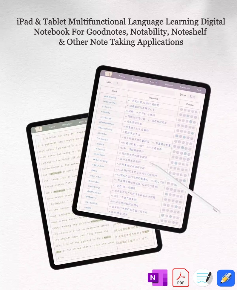 Digital Language Study Notebook, Vocabulary Notebook for iPad Goodnotes ...