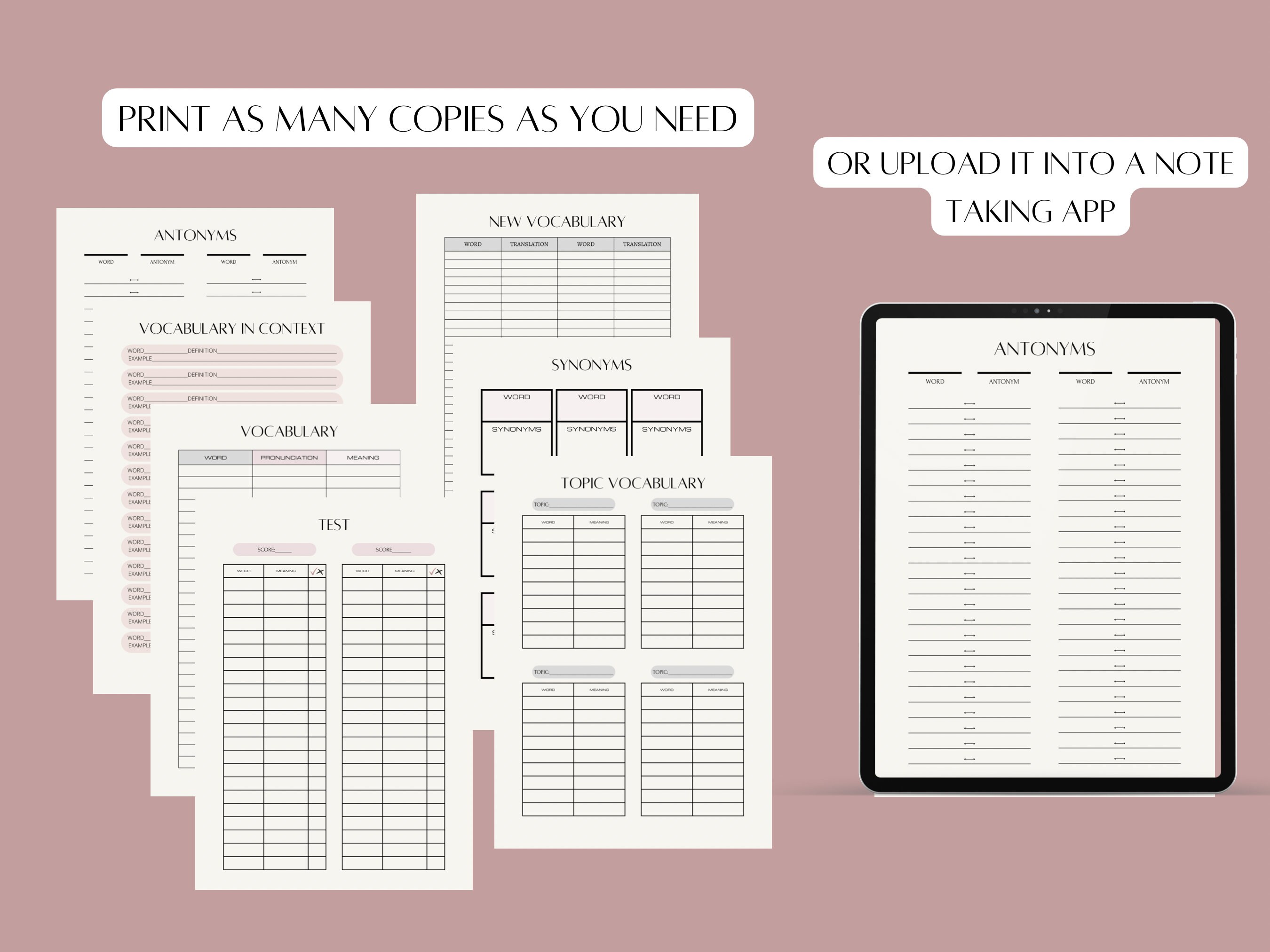 Vocabulary Notebook - Language Learning Printables PDF Notebook - Etsy