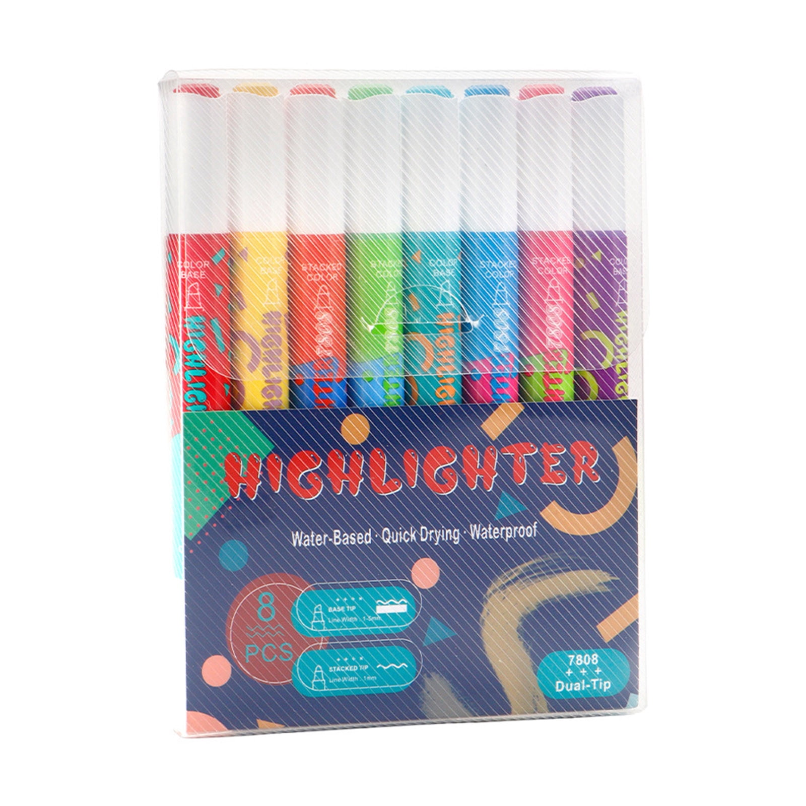 8-Pack Dual-Tip Highlighter Set, Two Colors in One Pen for Efficient ...