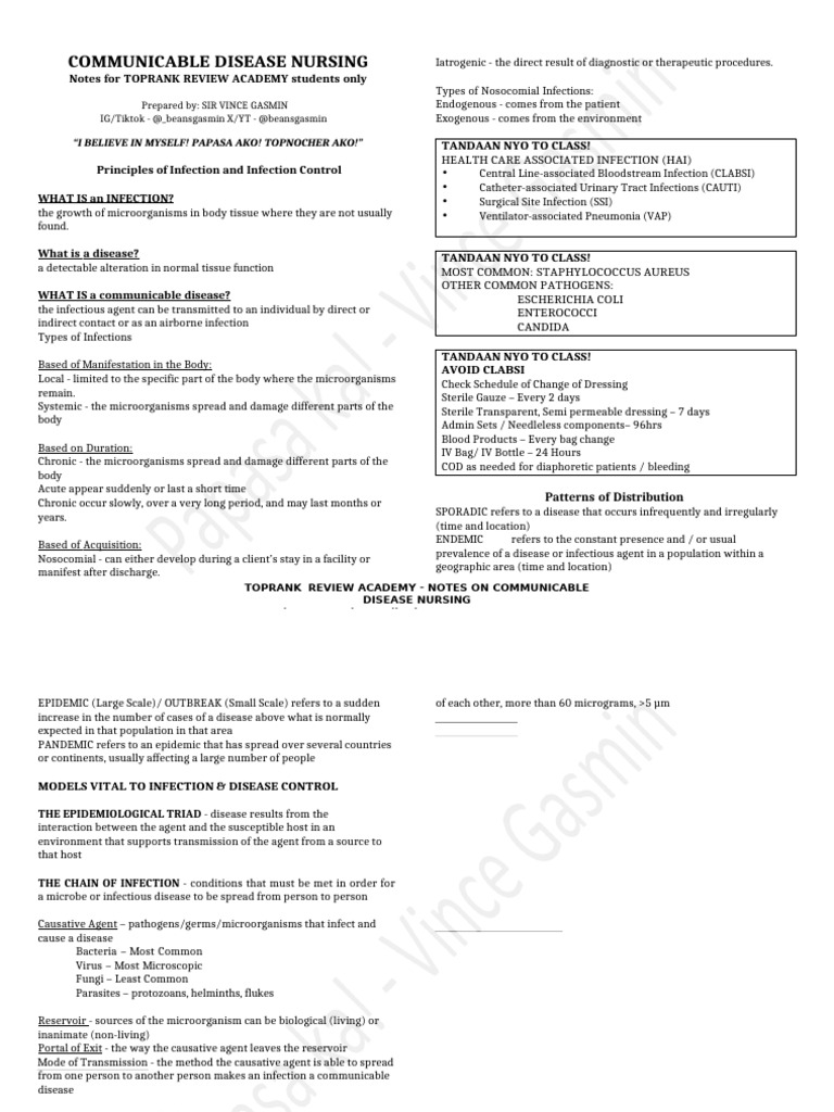 Communicable Disease Nursing Notes | PDF | Infection | Vaccines