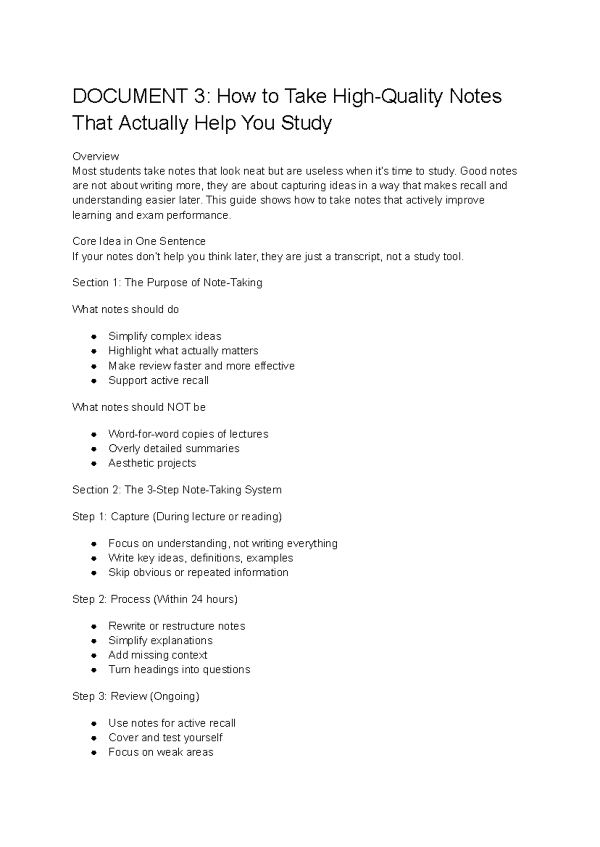 How to Take Effective Notes for Better Study (DOC 3) - Studocu