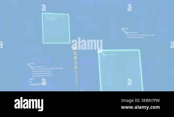 Animation of programming language with binary codes and screens on blue ...