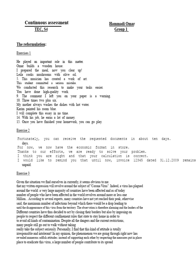 SOLUTION: Exercices sur la reformulation 1 - Studypool