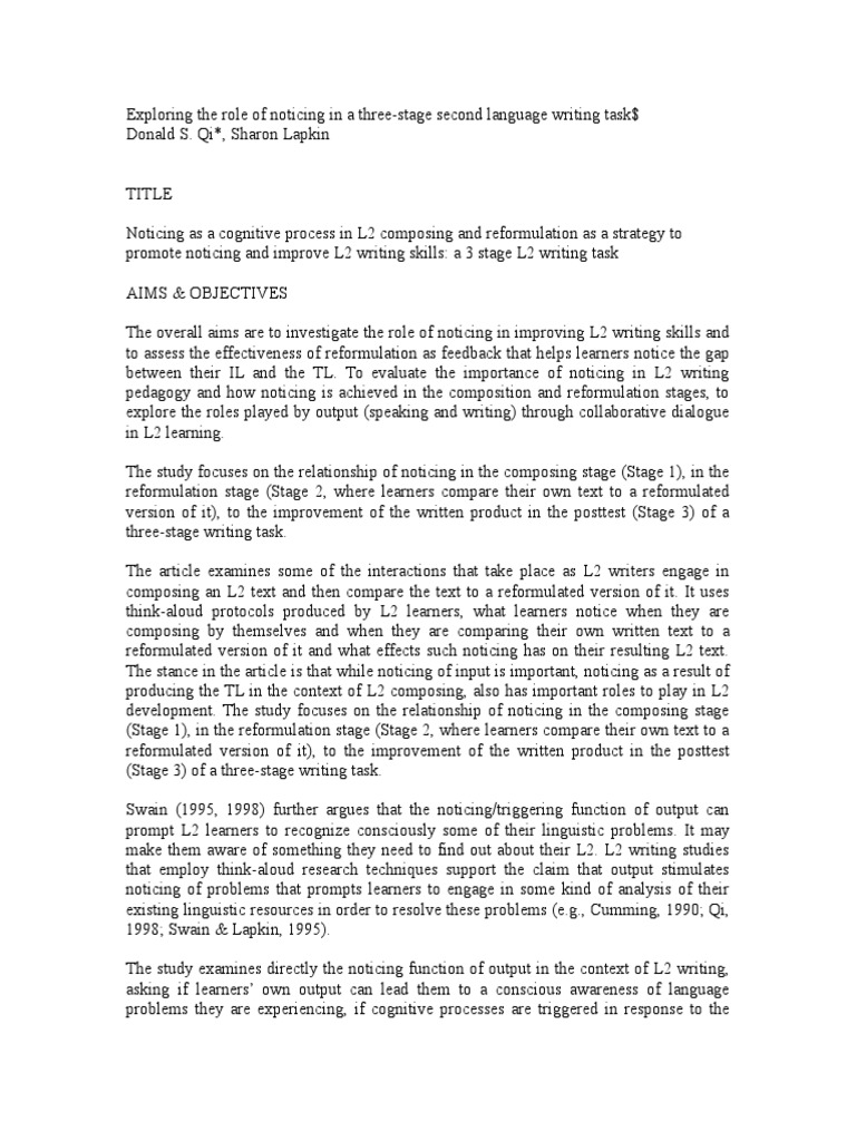 L2 Writing: Noticing & Reformulation | PDF | Second Language | Verb
