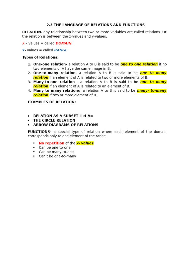 Language of Relations and Functions | PDF | Function (Mathematics ...