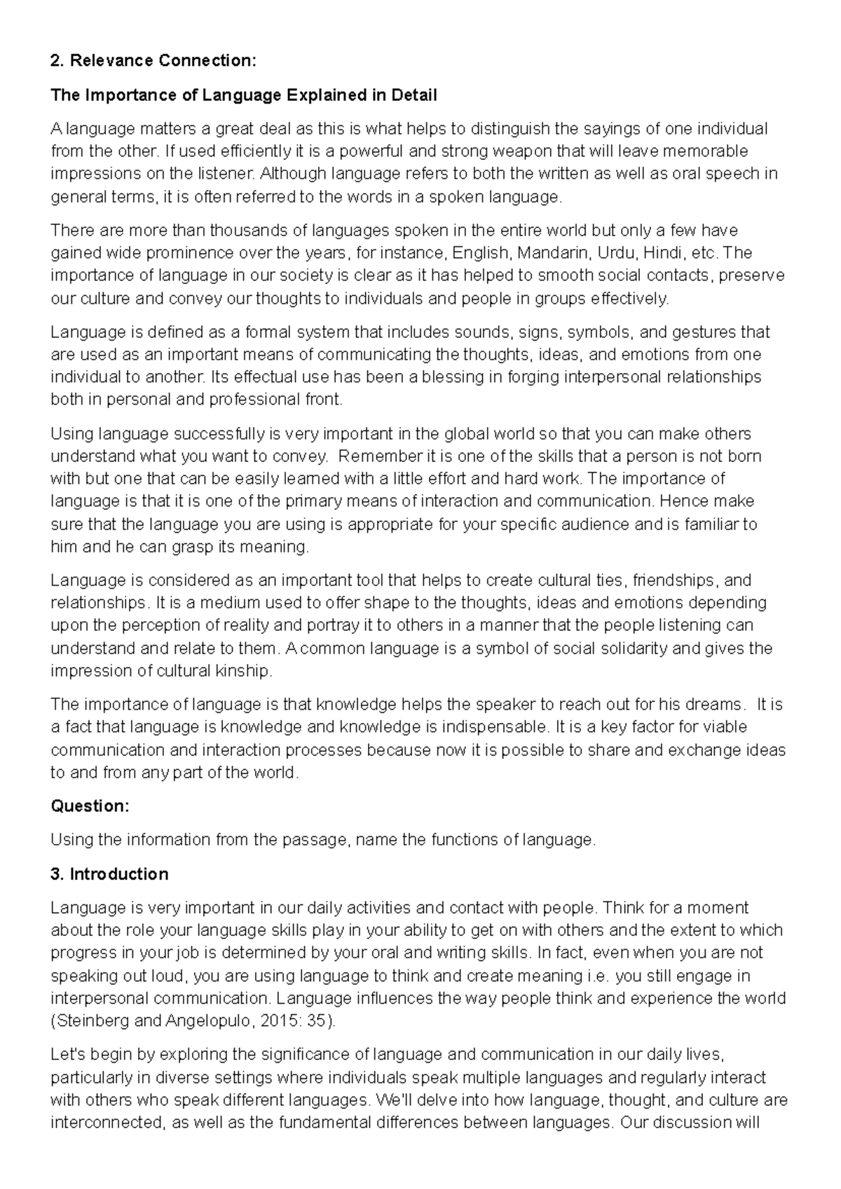 The Importance of Language in Communication - Studocu