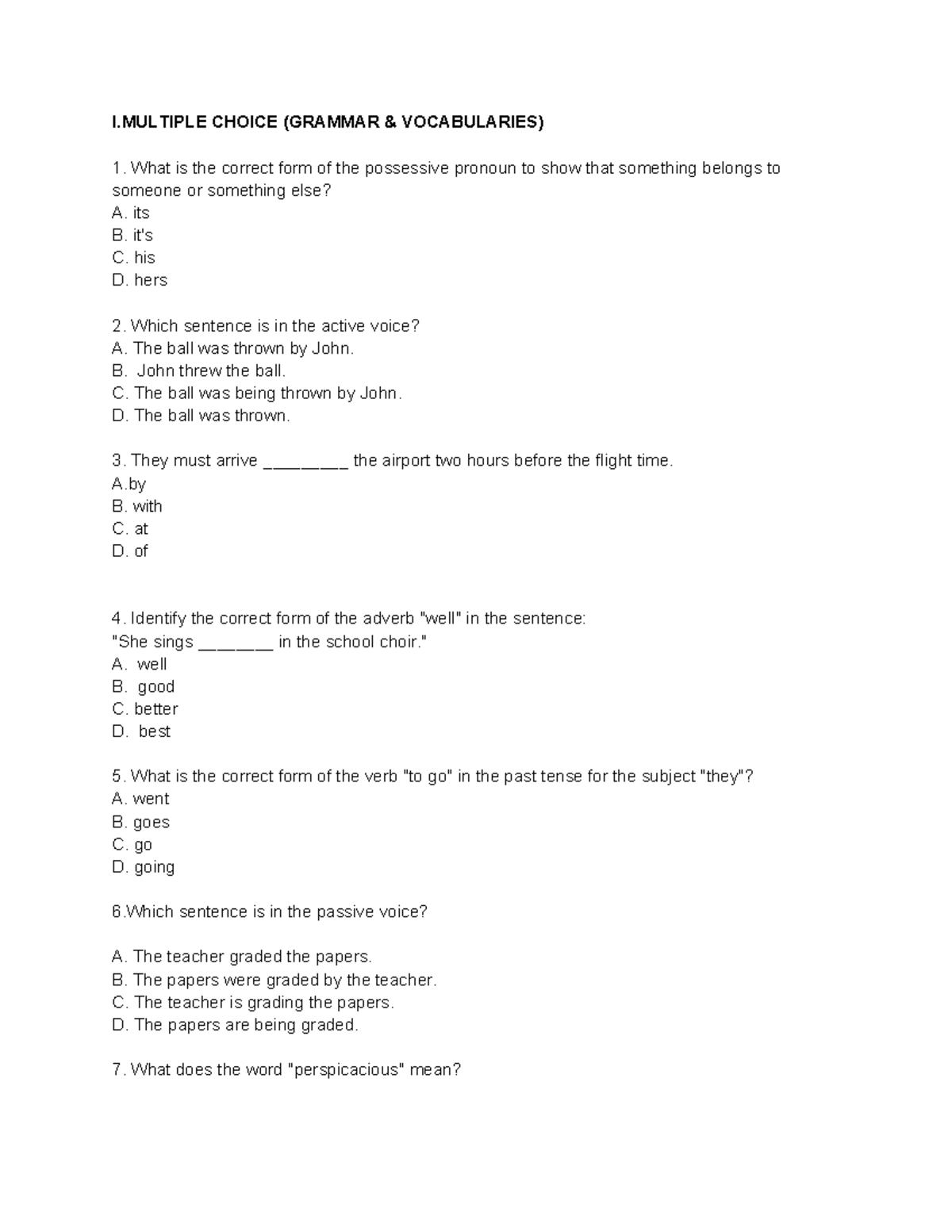 English Language Practice Test: Multiple Choice Questions and Writing ...