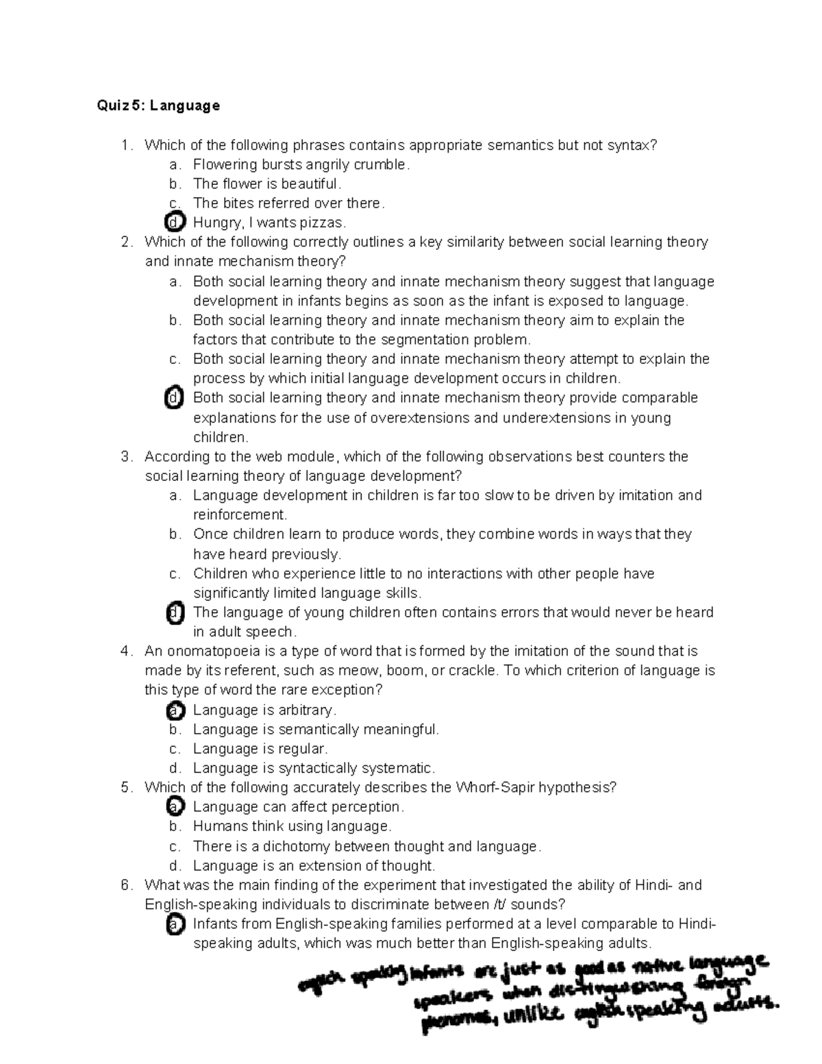 Quiz 5 Language - Practice questions - Quiz 5: Language 1. Which of the ...
