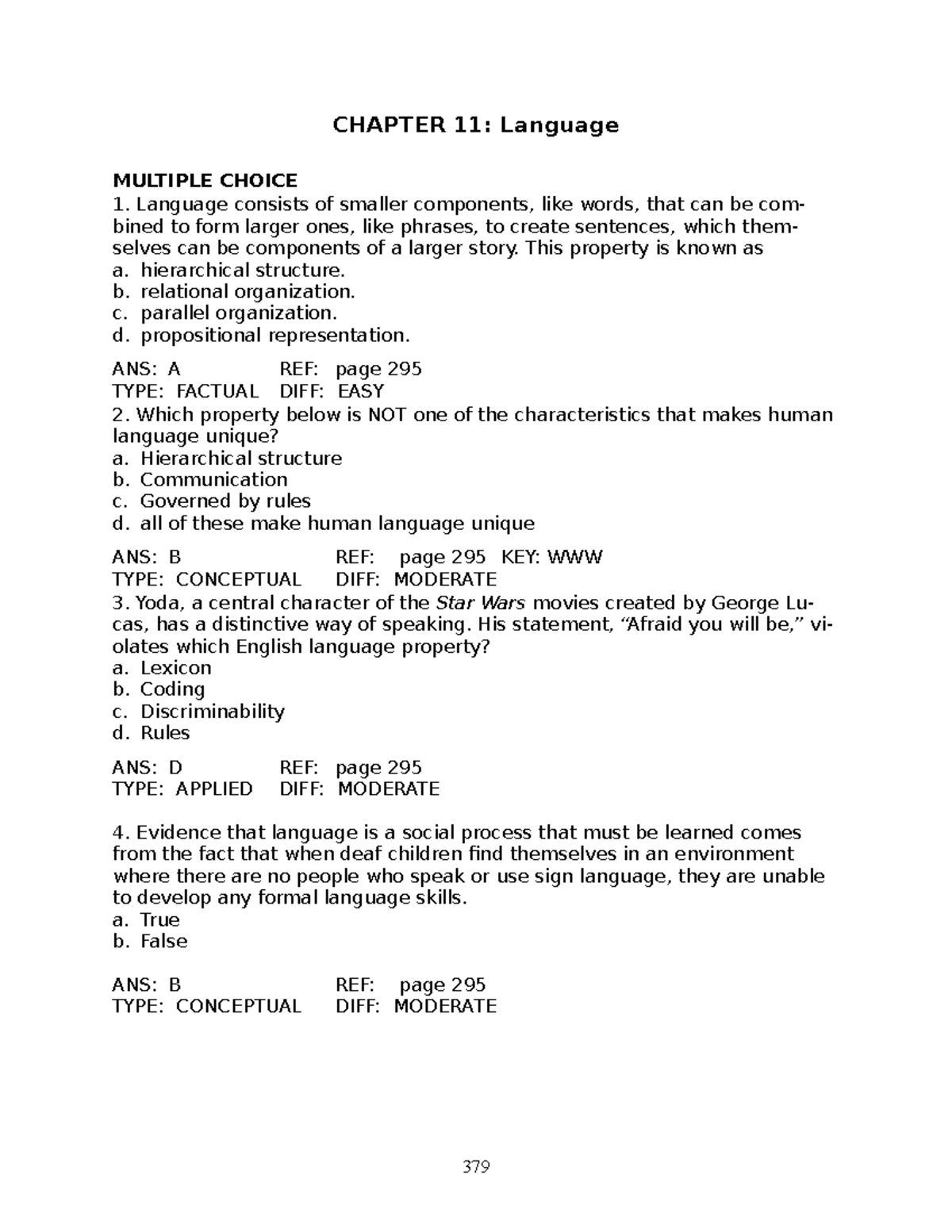 Sample/practice exam 2019, questions and answers - CHAPTER 11: Language ...