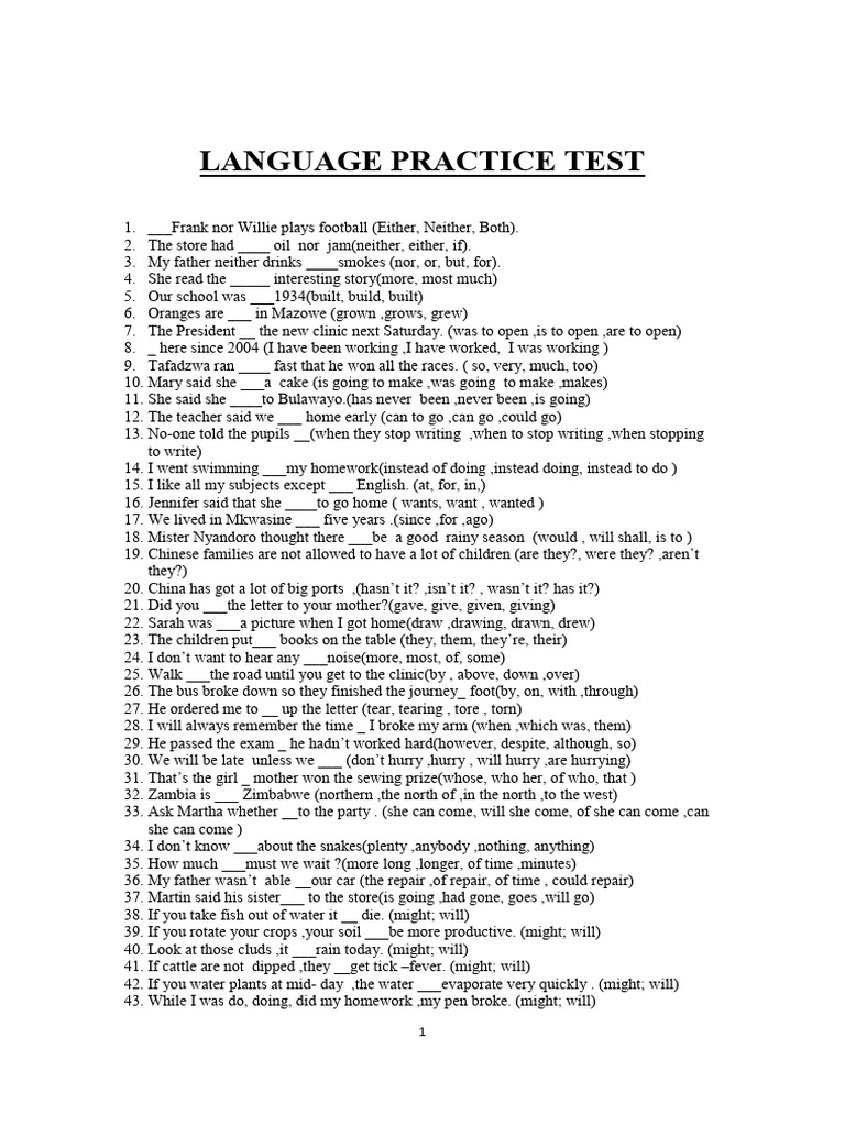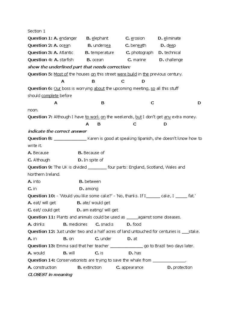 Test - English Language Practice Questions (Section 1-4) - Studocu