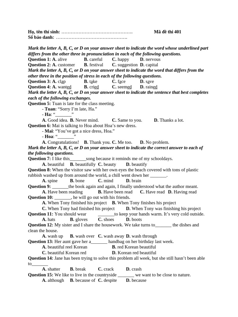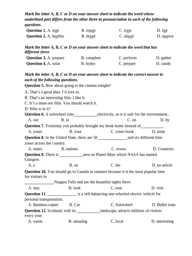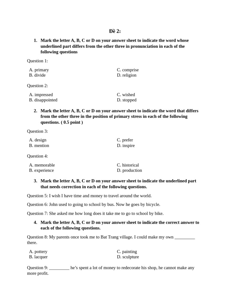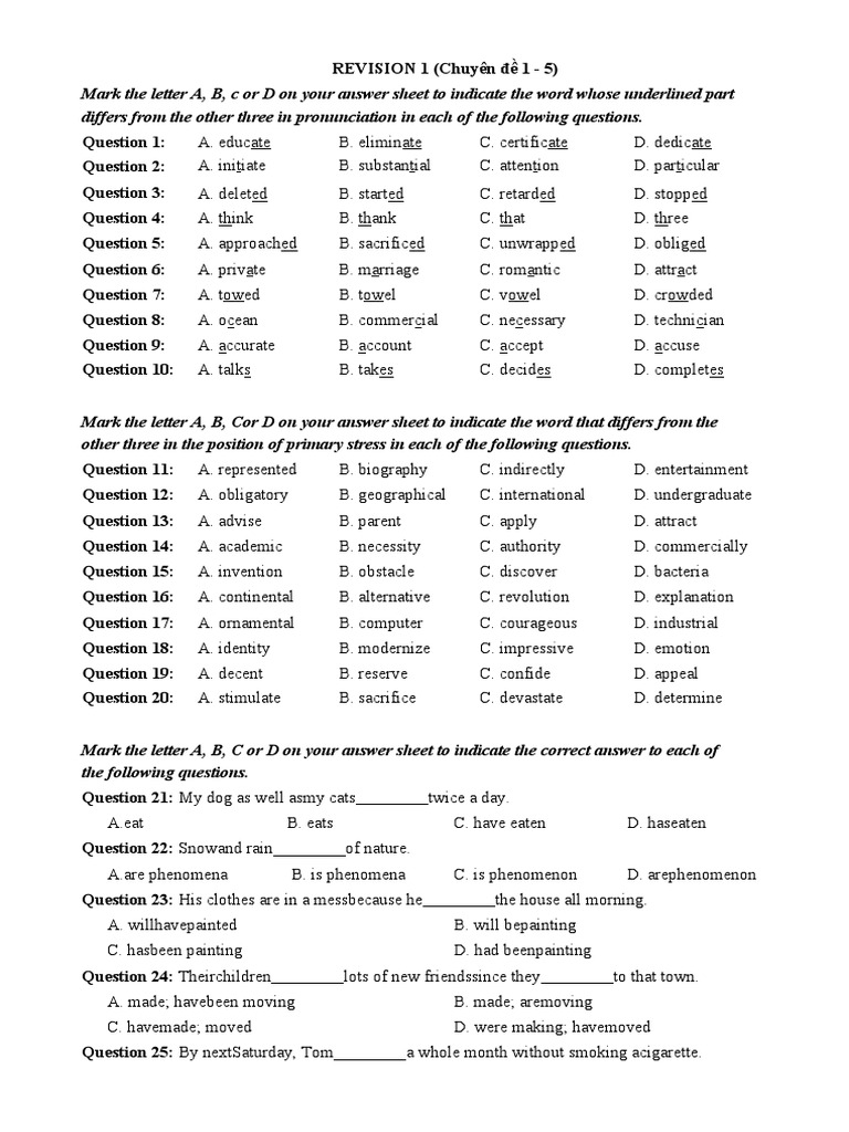 English Language 1-Sample Questions | Download Free PDF | Stress ...
