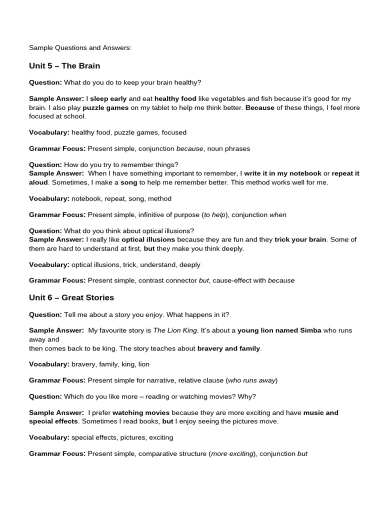 Speaking Test - Sample Questions and Answers | PDF | Language Mechanics ...
