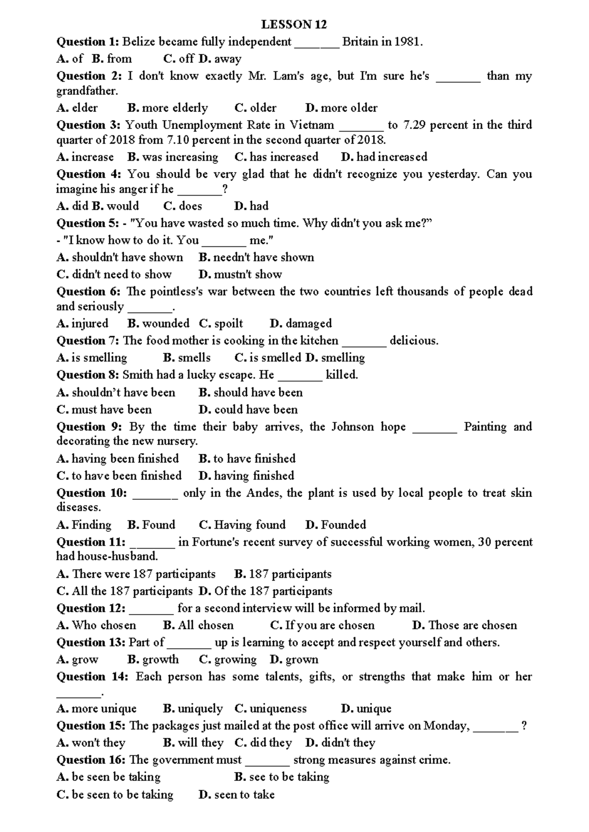 Lesson 12 & 82: English Language Practice Questions and Answers - Studocu