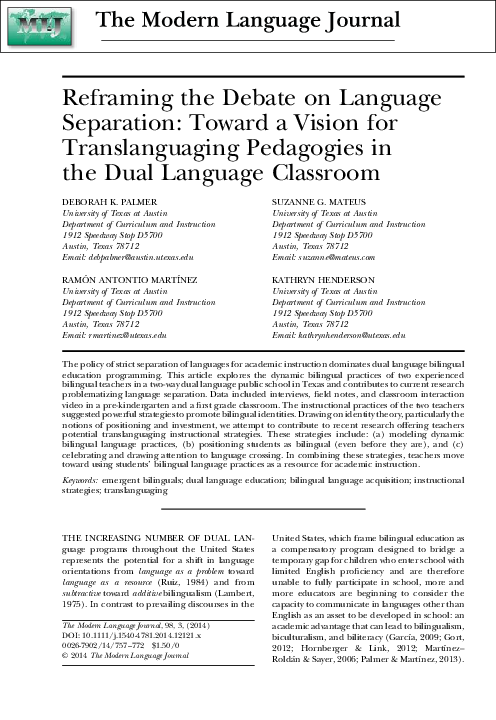 (PDF) Reframing the Debate on Language Separation: Toward a Vision for ...