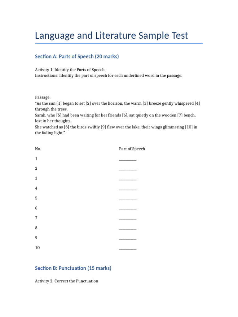 Language and Literature Sample Test | PDF