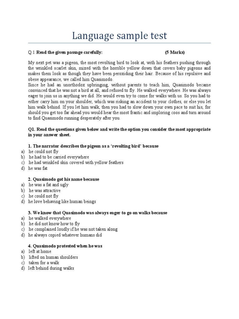 English Language Test Practice Questions | Course Hero