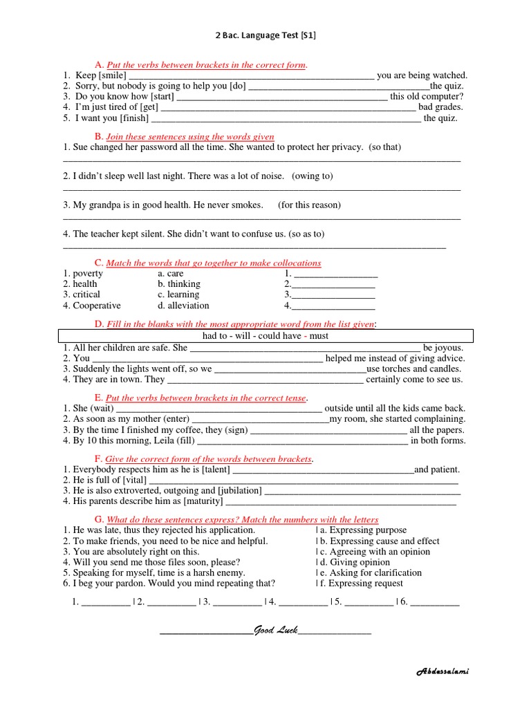Language Worksheets Test English Language Test For The 2n…: English