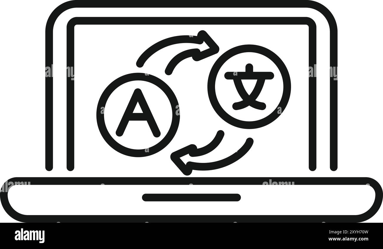 Laptop with the word Translate on the screen. Vector cartoon ...